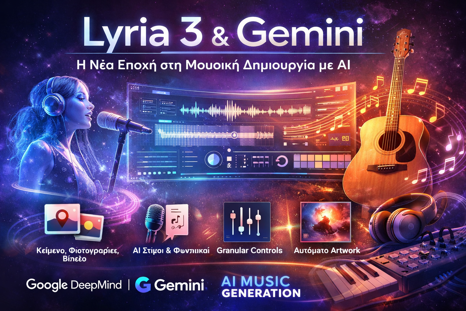 Η τεχνητή νοημοσύνη αλλάζει ριζικά τον τρόπο που δημιουργούμε περιεχόμενο – και η μουσική δεν αποτελεί εξαίρεση. Τον Φεβρουάριο του 2026, η Google DeepMind παρουσίασε επίσημα το Lyria 3, το πιο προηγμένο μοντέλο παραγωγής μουσικής με AI, ενσωματωμένο πλήρως στο οικοσύστημα του Google Gemini.